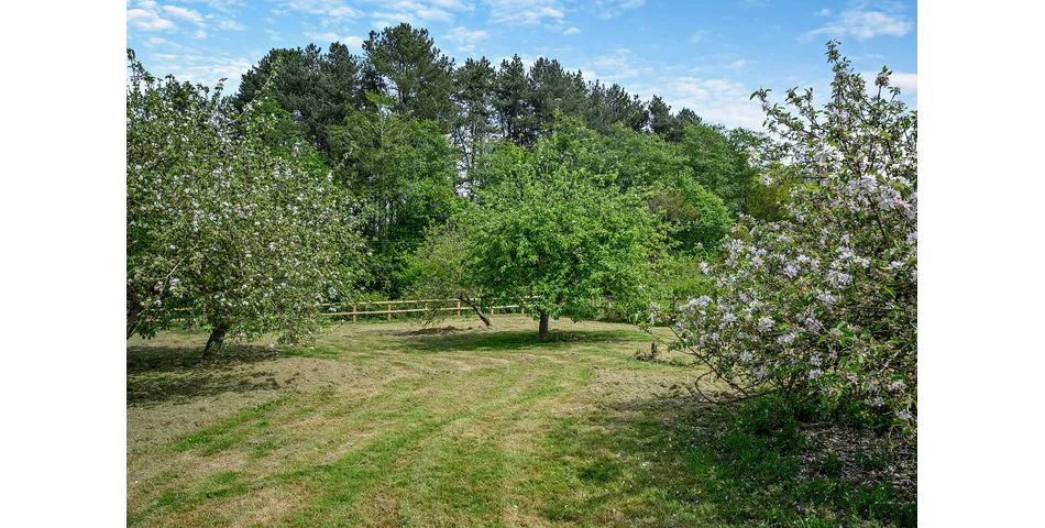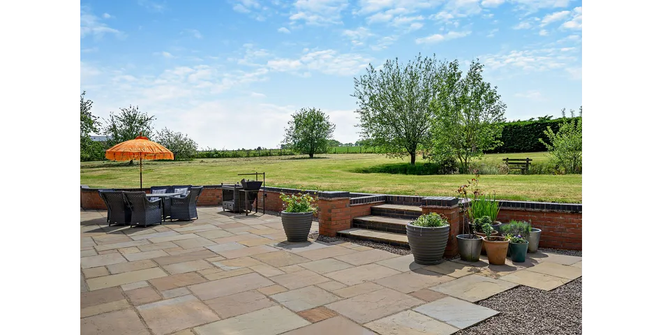 Outside, the grounds extend to approximately one acre, mainly laid to lawn with mature trees and a charming orchard. A generous stone terrace links the kitchen and sitting room, making it perfect for outdoor dining and entertaining.